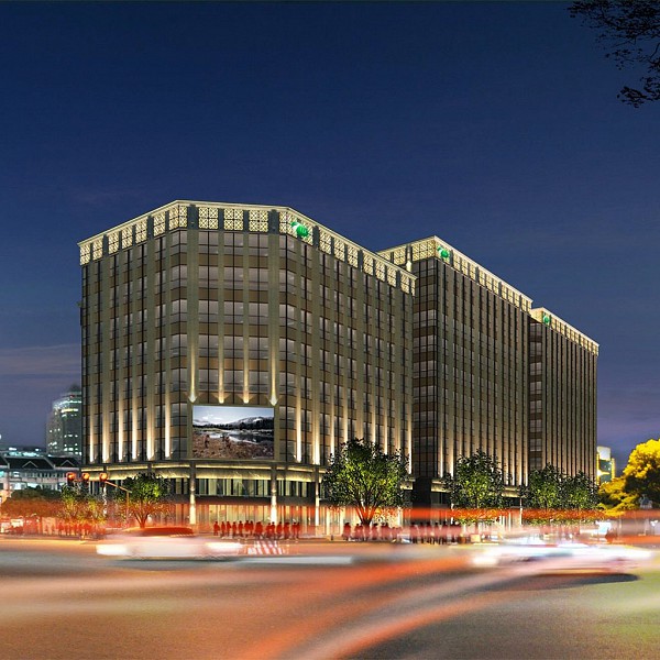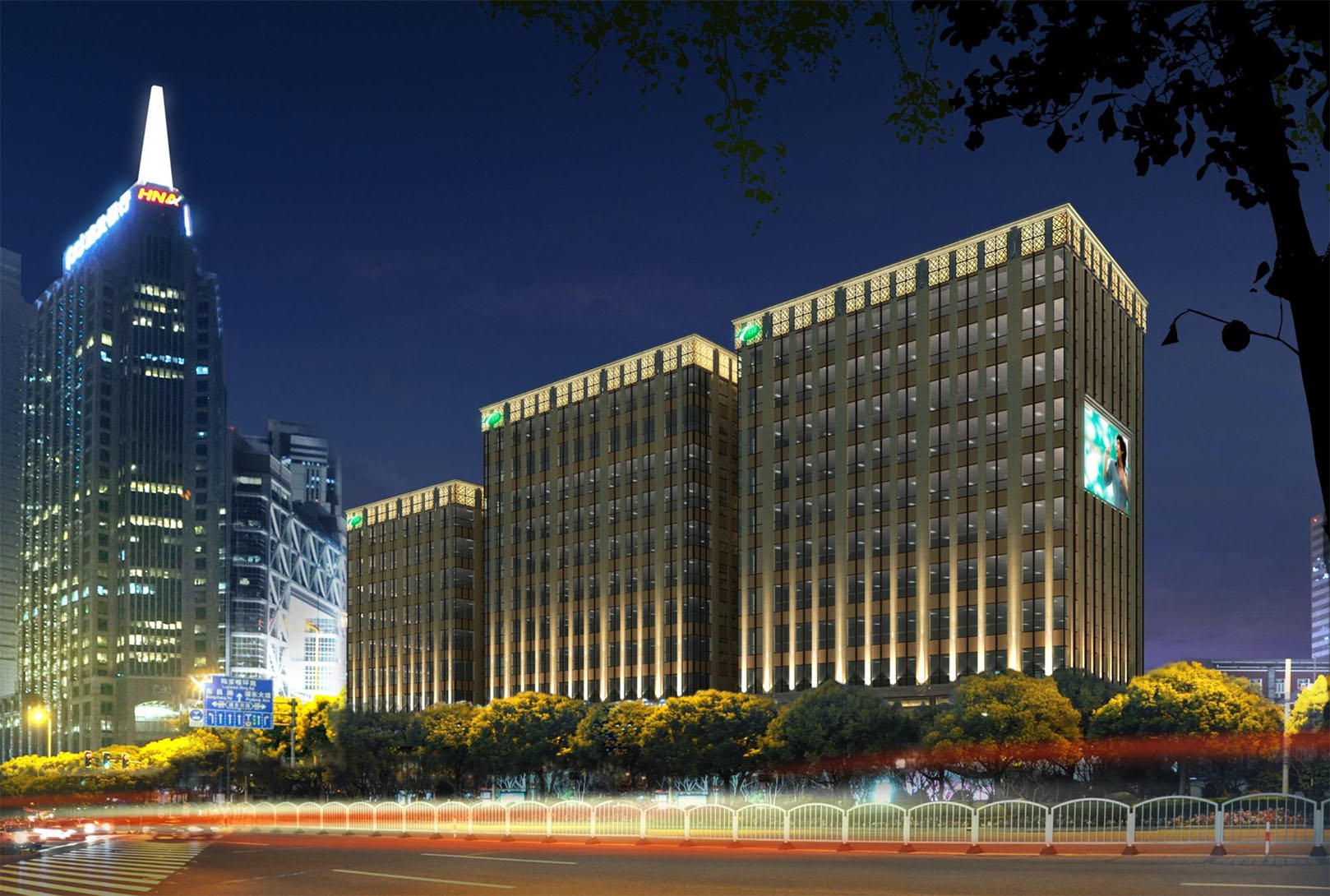 Description: This office complex includes three building of nine to 11 stories each, 50 meters high, and encompasses 42,000 sm of above-ground space and 22,000 sm of below-grade space.