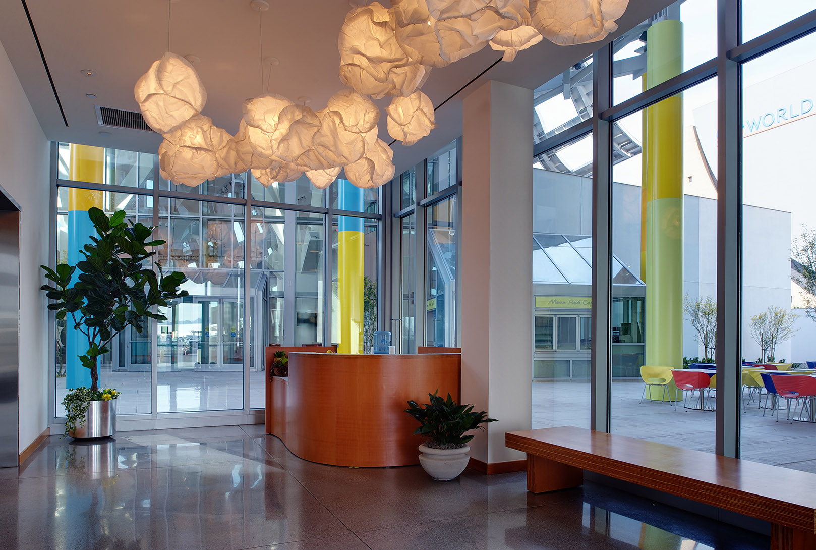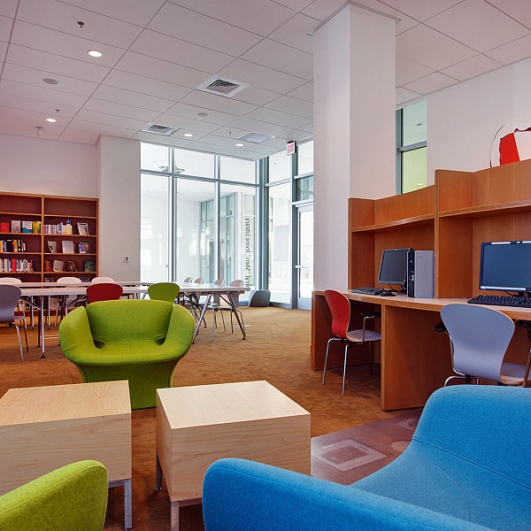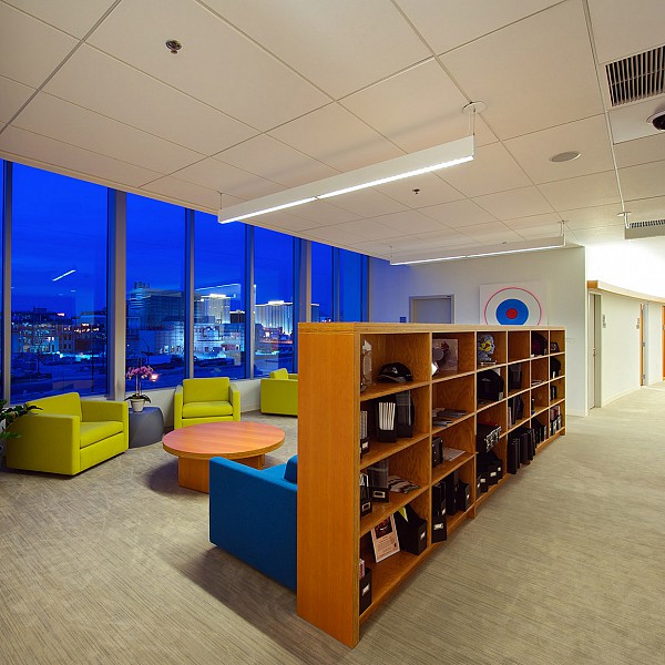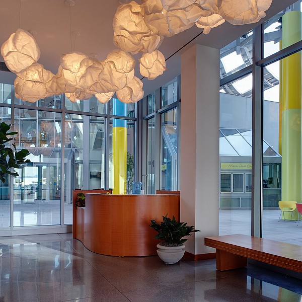 Description: This healthcare center is an aggregate of 21 general and specialty outpatient clinics ranging in size from 4,500 to 55,000 sf. Cosentini designed smaller, multiple unitary systems to meet the various energy requirements of this hospital facility, including operating suites, laboratories and offices. Each two-floor complex acts as a separate unit, unified by the nature of its medical services and by a two-story atrium waiting area. The interior space offers clear orientation and easy flow of pedestrian traffic. The first two floors include a lobby, dining facilities, laboratories, offices, patient education, and radiology. Examination rooms, doctors’ offices, and dictation cubicles are wrapped around the perimeter to provide maximum natural light. Laboratories, classrooms, dressing rooms and other work spaces that do not require natural light are located in the center of each floor. Mechanical equipment, medical records and archives are stored in two basement levels, with the top floor housing the mechanical penthouse. Cosentini also provided lighting design, enhancing the strong geometric projections of the atrium with adjustable accent lights and wall washers, providing the proper balance of interior surfaces with the perimeter daylit area.