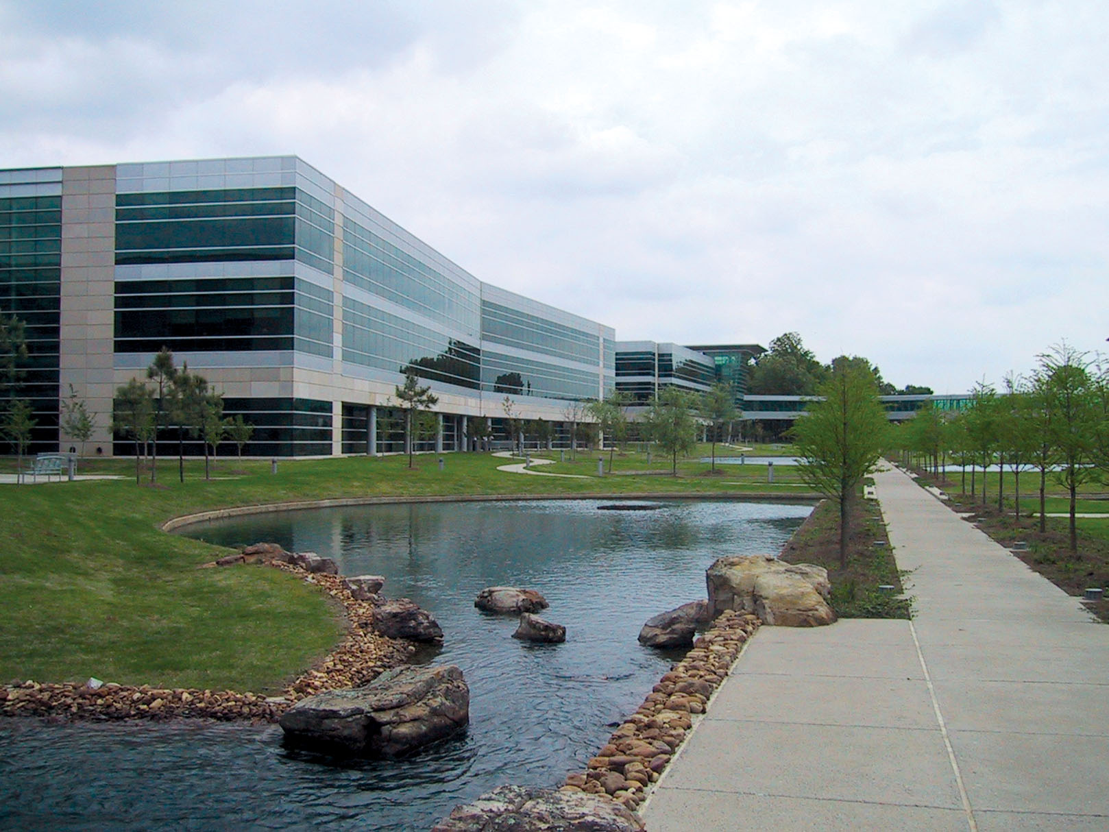 Description: Federal Express required engineering systems that would allow them to quickly and inexpensively reconfigure and/or expand work groups, workstations and office plans to accommodate rapid changes in personnel and work requirements. Cosentini accomplished this by specifying underfloor air systems that use raised-access floor panels with swirl type diffusers for air distribution to workspaces. The engineering design also includes a system of modular floor boxes for power and telecommunications/data that can accommodate space planning changes quickly and without excessive cost or disruption to operations. Program areas within this 1.1 million sf world headquarters include general and executive offices, a cafeteria, a service building, and a district cooling and heating system.