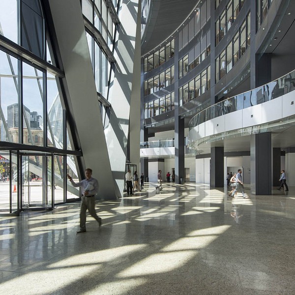 Captions: 01: Exterior, 02: Skyline, 03: Exterior, 04: Façade detail, 05: Façade detail, 06: Interior view of skygarden, 07: Interior view of lobby, 08: Interior view of lobby