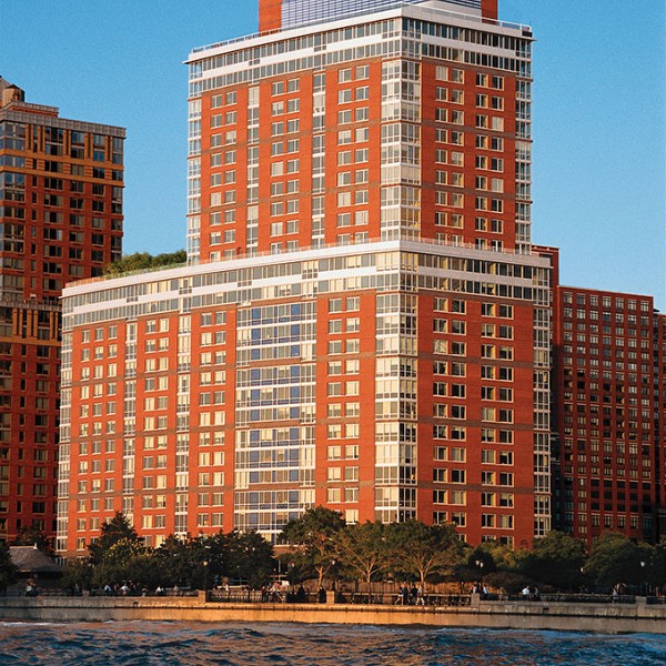 Description: This residential project includes 380 apartments and incorporates numerous sustainable design features that include dedicated fresh air supplied to every residence with air filtration systems to remove 85% of particulate matter; a central humidification system to maintain a minimum 30% relative humidity during the heating season; building materials and finishes free of harmful off-gassing and low in VOCs; ongoing air quality testing after completion; a water recycling system to treat and reuse building wastewater to supply toilets and cooling towers (recycled water used for make-up); stormwater collection and reuse for drip irrigation systems; a central water filtration system; materials containing high recycled content, wood materials from certified forests, and/or materials from rapidly renewable natural resources; a large percentage of building materials originating from within 500 miles of the building site; a highly insulating and airtight exterior wall system; spectrally selective, low-E glass that reduces solar heat gain while retaining a high visible transmittance (Viracon VE-1-2M U=0.29, SC=0.43, VT=70%); airtight casement windows; planted roofs; high-efficiency lighting throughout the common areas; sensor-controlled public area lighting; a daylight dimming system in the public lobby; high-efficiency fluorescent lighting in apartments where appropriate (entries, bathrooms, kitchens); master switch to turn off switched-lighting in the entire apartment except bathrooms; a Building Management System (BMS) with a wet-bulb temperature reset for cooling tower; programmable thermostats to control all apartment heating and air conditioning; gas-fired absorption chiller heater with COP = 1.0 and IPLV = 1.19; condensing boiler for domestic hot water with high combustion efficiency; variable speed drives on the secondary water pumps, and on cooling tower fans; exhaust fan modulation in garage based on CO sensors; premium high efficiency motors; Energy Star-labeled appliances throughout the building; photovoltaic panels that generate 5% of peak electricity for the core-and-shell building; and fully commissioned systems to ensure intended performance.