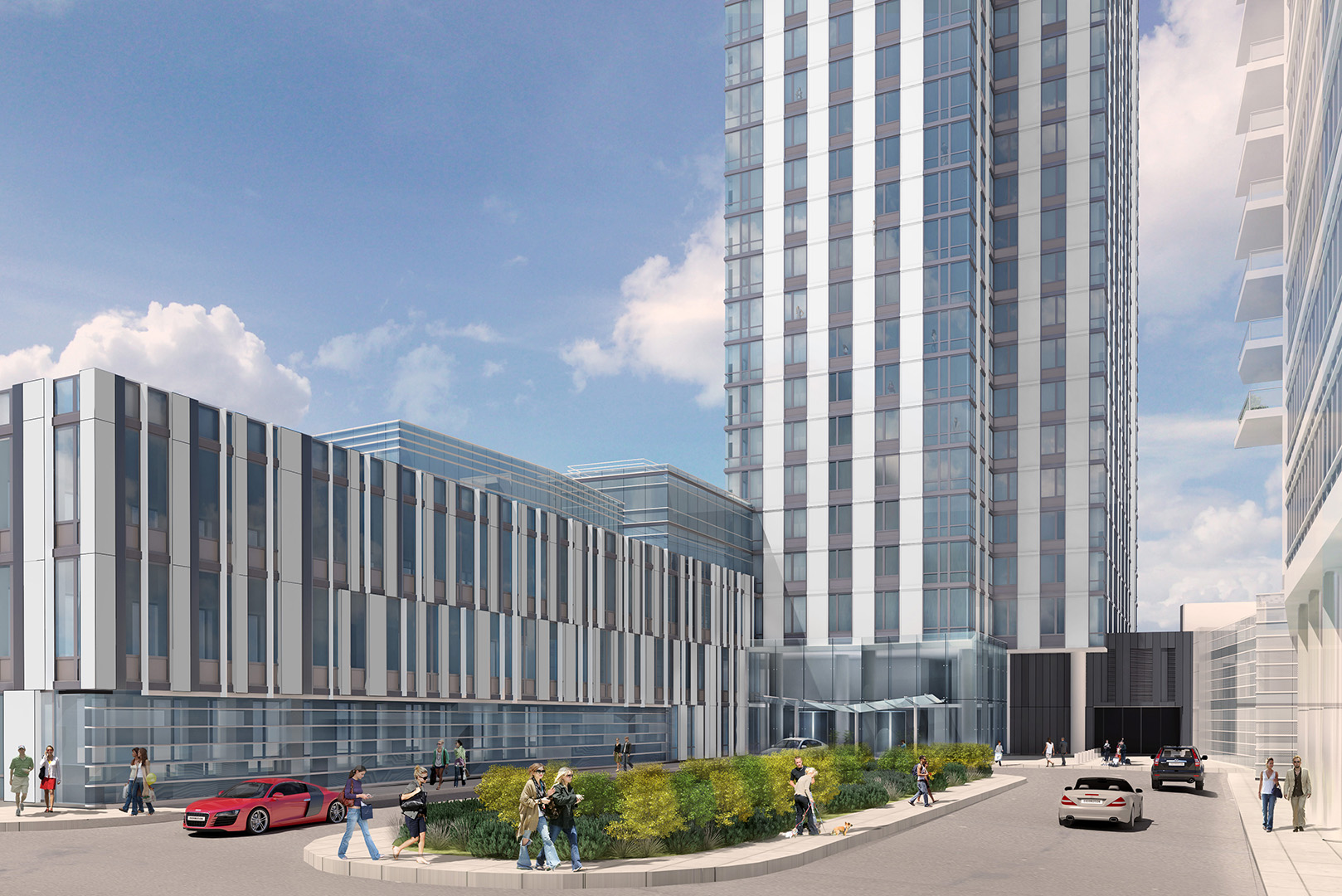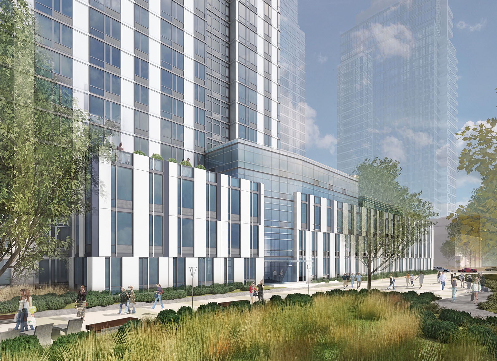 Description: This 40-story high-rise residential tower encompasses approximately 525,000 sf of residential space that includes 500-520 rental units. Amenities include a fitness center, an expansive terrace, and parking for approximately 80 cars. The units will be primarily studio, one-, two-, and three-bedroom apartments.