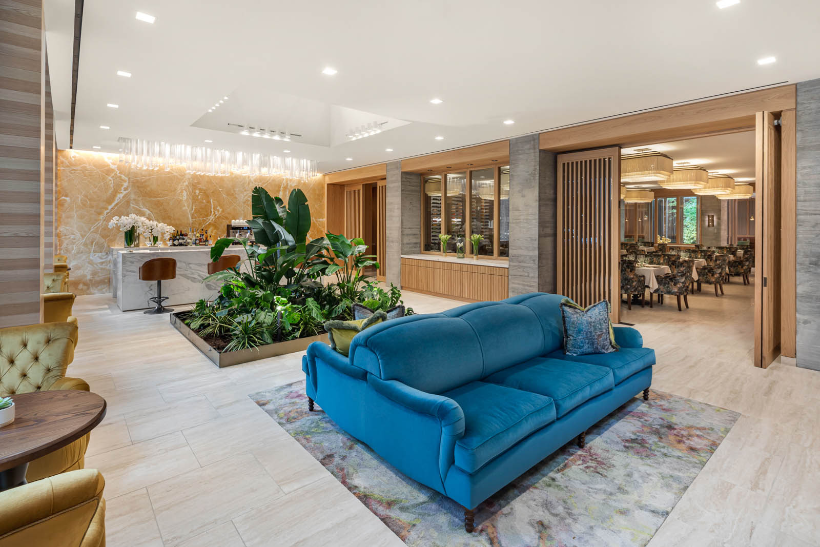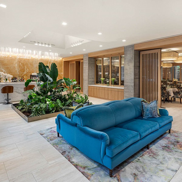 The Lighting Design provides a warm sensibility and intimacy often found in our own homes. Warm wood tones are accentuated by soft light. The outside is brought inside through illuminated greenery throughout the building. In response to the COVID-19 pandemic, germicidal UV-C lighting fixtures have been included throughout the common spaces, kitchens and restrooms for the health and safety of the residents.